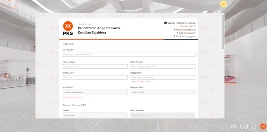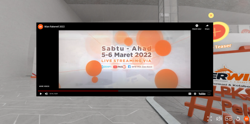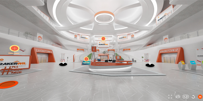 Virtual Expo Implementation for Partai Keadilan Sejahtera (PKS/ Justice and Prosperous Party) West Java Region online work meeting. User can explore every rooms of meeting as they need. Output of the project are  html 5 website, can be open with every platform (pc, laptop, android mobile, iOS, etc)
